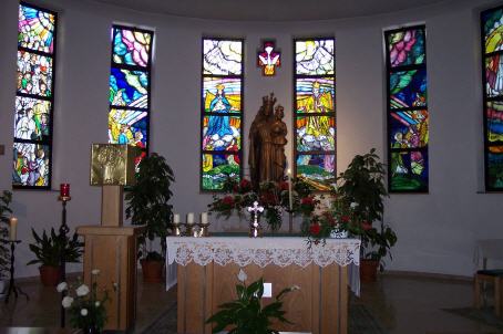 bezeichnet die Marienstatue im Altarraum die Stelle, an